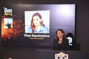 Τον καθοριστικό ρόλο της Τεχνητής Νοημοσύνης για το παρόν και το μέλλον του τουρισμού, υπογράμμισε η Υπουργός Τουρισμού κα Όλγα Κεφαλογιάννη, στην ημερίδα για την Τεχνητή Νοημοσύνη με τίτλο «The Symbiosis Effect: AI & I», που διοργάνωσε το BCA College.